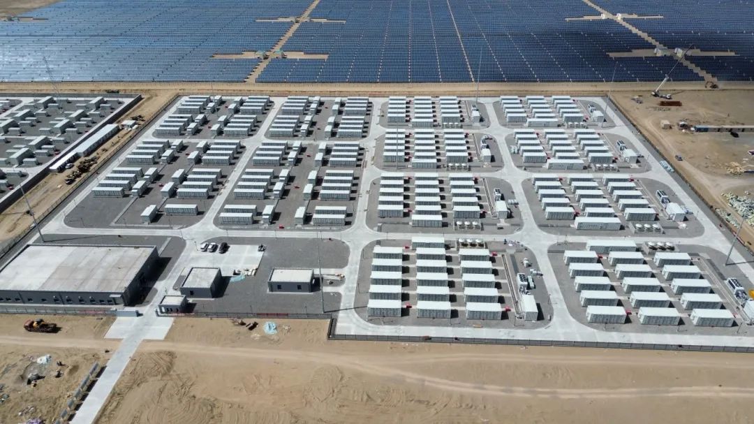 該電站位于青海省海西蒙古族藏族自治州格爾木市,由中國電建所屬華東院總承包。電站總裝機容量224.5兆瓦/889兆瓦時,由傳統(tǒng)集中式儲能系統(tǒng)和構(gòu)網(wǎng)型高壓直掛式儲能系統(tǒng)組成,其中包含的430.4MWh高壓直掛式儲能是國內(nèi)規(guī)模最大的高壓直掛構(gòu)網(wǎng)型儲能項目。