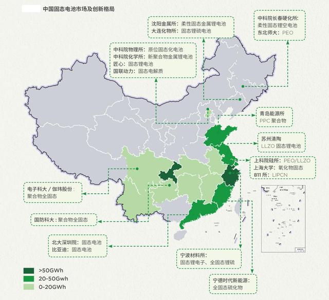 全國固態電池產能主要分布在廣東、長三角、重慶、北京等有較強科研實力和完善汽車產業鏈布局的地區。
