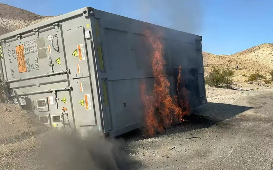 事故起因是一輛載有集裝箱儲能設備的卡車翻覆后,電池集裝箱起火,所幸目前公路已恢復通行。