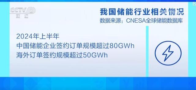 除了戶用儲能領域,海外大型儲能項目今年也表現亮眼。據CNESA全球儲能數據庫不完全統計,2024年上半年,中國儲能企業簽約訂單規模超過80GWh,其中海外訂單簽約規模超過50GWh。