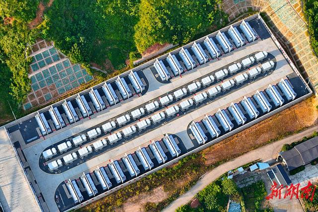 8月22日,通道侗族自治縣塘沖儲(chǔ)能電站,一排排電池艙在陽(yáng)光映照下蔚為壯觀。