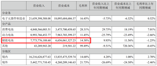 動(dòng)力電池出貨13.54GWh,同比增長(zhǎng)7.03%;營(yíng)收89.94億,同比下降25.79%;毛利率11.45%。