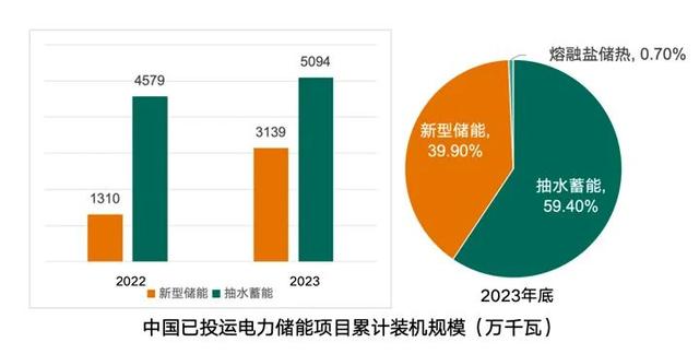 近兩年我國新型儲能(指除抽水蓄能以外,以輸出電力為主要形式的儲能技術)發展迅速,新型儲能在我國電力儲能累計裝機中的占比由2022年的16%激增至2023年的40%。