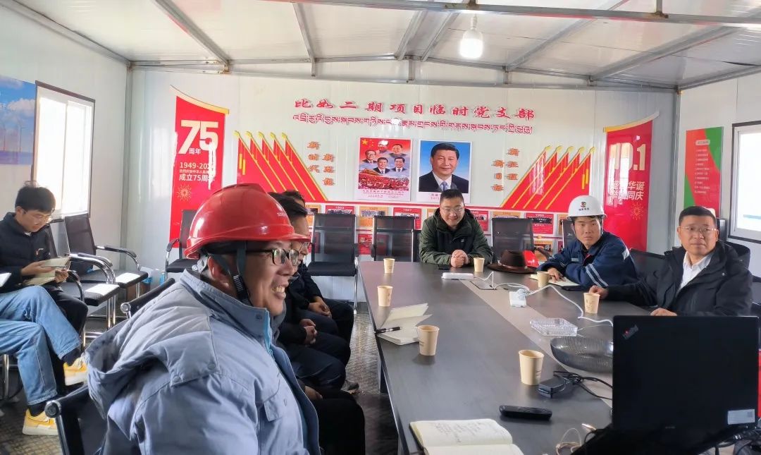 在伯托100MW光伏儲能項目現場,李成統與國家電投山南電力公司負責人視頻連線,就加快施工進度、謀劃延伸產業鏈、形成發展線等方面進行交流。與現場負責人深入交談,實地查看項目進展,詳細了解項目建設進度、質量管控、安全生產、生態環境等情況,現場協調解決項目建設過程中存在的困難和問題。
