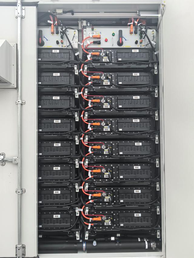 在潞城仁和儲能電站園區內有20個電化學儲能單位,好似一個個由電池組成的“車廂”。打開“電池車廂”艙門,記者發現,這個龐然大物是由多個小塊的磷酸鐵鋰電瓶組成的。每個儲能單位由2個小倉組成,每個倉內有24簇電池包,每簇電池包內有8塊電池,這些電池的壽命約在8-10年。