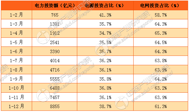 近日,國家能源局公布了2016年全國電力工業數據。數據顯示,2016年1-12月,全國電力投資額達到8855億元,其中,電源投資占比達到38.7%,電網投資占比達到61.3%。