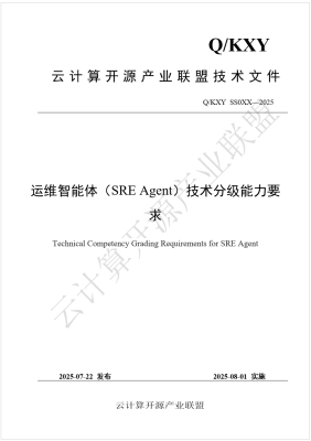 2025年12月23日,由中國通信標準化協會主辦、中國信通院承辦的 “2025可信云大會-軟件工程智能化分論壇” 在北京中關村國家自主創新示范區會議中心舉行,《運維智能體(SRE AGENT)能力要求》正式發布。杭州乘云數字作為可觀測性領域領導者,重點參與了本次報告的編寫。該標準參與編寫單位包括:中國信息通信研究院、移動云、華為云、螞蟻、農業銀行、杭州乘云數字、小米、神州靈云、農商銀行、中電普華、百度、恒為科技、福建移動、宜通衡睿、銀信、長三角數鏈。本標準文件由云計算開源產業聯盟提出并歸口。