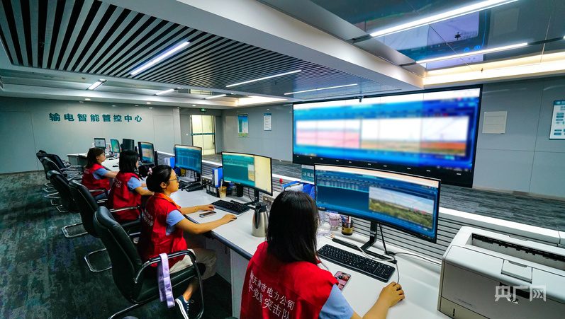 國網(wǎng)天津高壓公司工作人員在輸電管控中心內(nèi)開展保電監(jiān)測(cè)(央廣網(wǎng)記者 褚夫晴 攝)