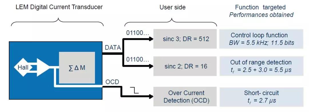 LEM公司針對數字化的市場需求,在經典開環傳感器的基礎上基于∑-△ ADC的技術,開發出了一系列的先進數字輸出傳感器。其基本原理如圖1所示。