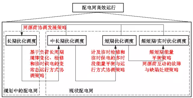 智能配電網優化調度的對象包括配電網絡、分布式電源/微電網、負荷。為了通過優化調度實現智能配電網的高效運行,需要多個部門在不同時間采用多種調度控制方法,而各種調度方法所需獲取的配電網信息均有所差別,并且信息的來源也具有不確定性,因此配電網優化調度信息和方法具有時間相關性。