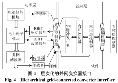 傳統的電力電子控制系統基本以集中式控制模式為主,控制系統與底層硬件的相互依賴性較大,且靈活性和擴展性較差[8-10]。并網變換器控制系統采用按功能進行分層控制的架構,充分發揮了數字控制和數字通信的優勢,同時該架構的設計更利于實現系統的自治控制,也利于上層調度。