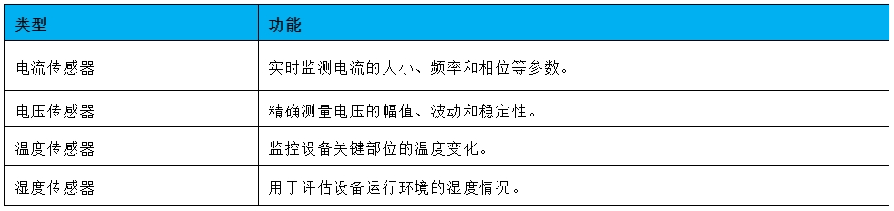 通過安裝在電力設備上的電流、電壓、濕度等各類傳感器,采集設備運行參數。其功能見表3。