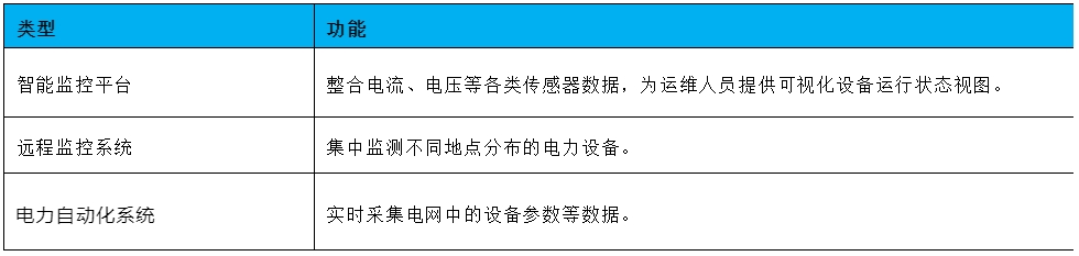 包括各類智能監控平臺、遠程監控系統、電力自動化系統等收集的設備運行狀態和電網運行信息。其功能見表4。