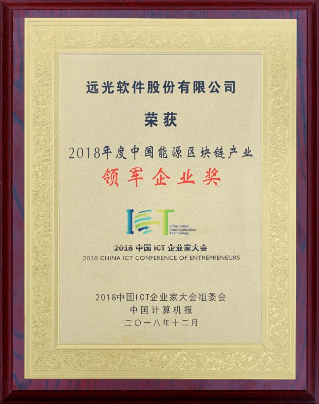 日前,由ICT企業家大會組委會主辦,賽迪傳媒、中國計算機報承辦的“2018中國ICT企業家大會”在北京成功舉辦。遠光軟件憑借在能源區塊鏈領域的卓越表現,獲大會授予“2018中國能源區塊鏈產業領軍企業獎”。