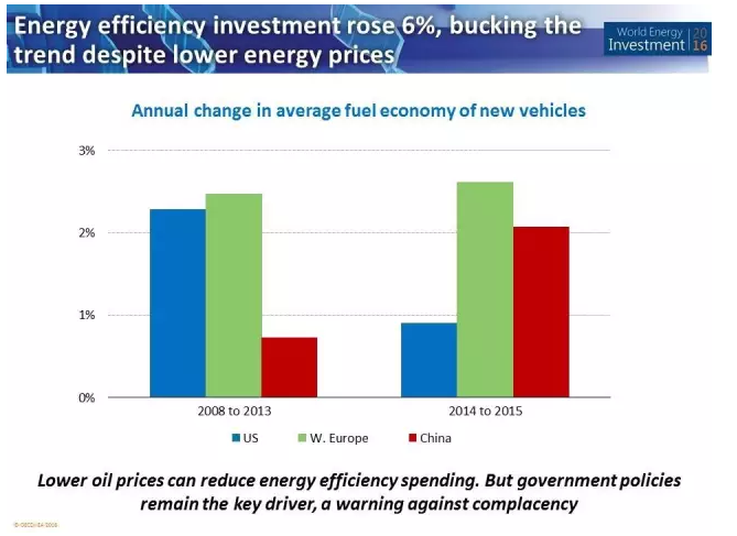 盡管能源價格下降,2015年能效投資仍然有6%的增幅。