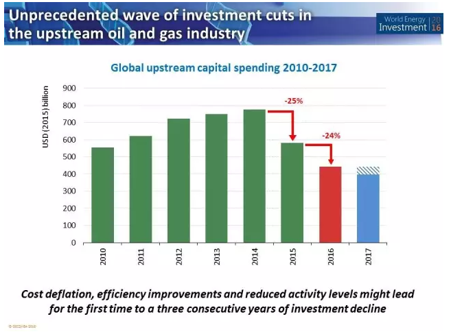 說到油氣下降,IEA首席經濟學家LaszloVARRO介紹,石油和天然氣上游產業已連續兩年出現投資縮減,基本上甚至縮減達到50%,約30億美元。IEA預計接下來會有一個穩定期,未來一年不會有進一步的縮減。