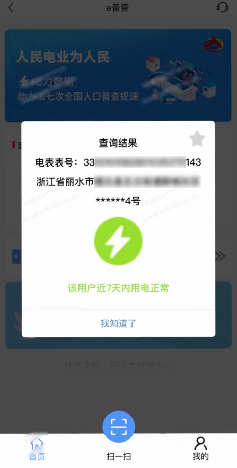 查詢操作也十分簡(jiǎn)單:只需打開(kāi)網(wǎng)上國(guó)網(wǎng)app,點(diǎn)擊“e普查”模塊,掃描住戶用電電能表上的條形碼(即表號(hào)),隨后將自動(dòng)生成綠、黃、紅三種查詢結(jié)果,快速呈現(xiàn)出該住戶的用電情況。