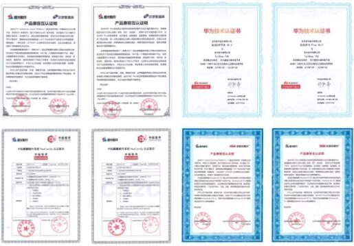國產服務器(華為)、國產操作系統(中標麒麟)、國產數據庫(達夢)、國產中間件(中創)認證書