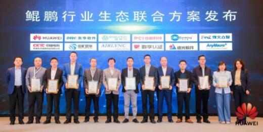 在活動現場,華為與多家合作伙伴共同發布了鯤鵬行業生態聯合方案,并授予合作伙伴技術認證證書。