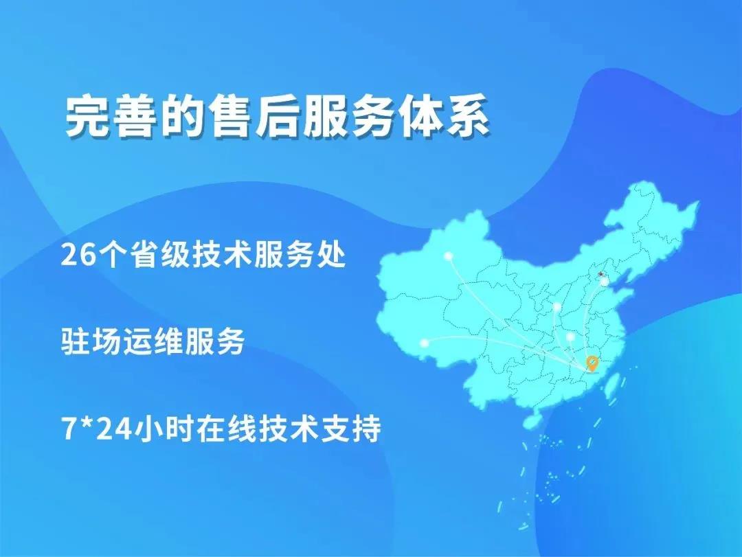 以北京、福州、武漢、西安為技術中心,設立了包括新疆、西藏在內的26個省級技術服務處,提供駐場運維服務和7*24小時在線技術支持,服務網絡遍布全國。