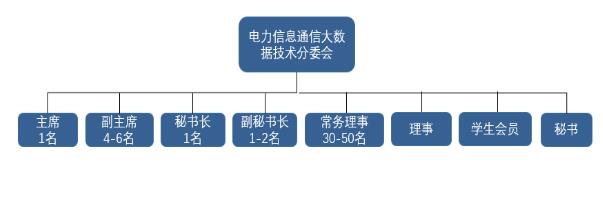 電力信息通信大數據技術分委會設主席1名、副主席4~6名、秘書長1名、副秘書長1~2名、常務理事30~50名、理事和學生會員若干名。主席每屆任期3年,連任不超過兩屆。常務理事任期3年,理事任期1年,均可連任。理事任期滿3年可申請為常務理事。
