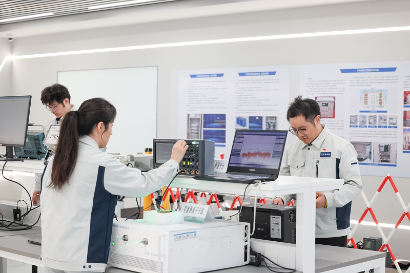 ▲國網北京電科院科研人員在實驗室開展實驗工作