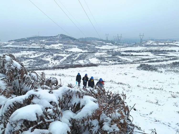 12月5日,貴州電網公司畢節威寧供電局組織突擊隊,對地勢較高的輸電線路進行覆冰特巡,測量線路覆冰情況、輸電線路溫度等,確保線路安全穩定運行。王緒竹 攝