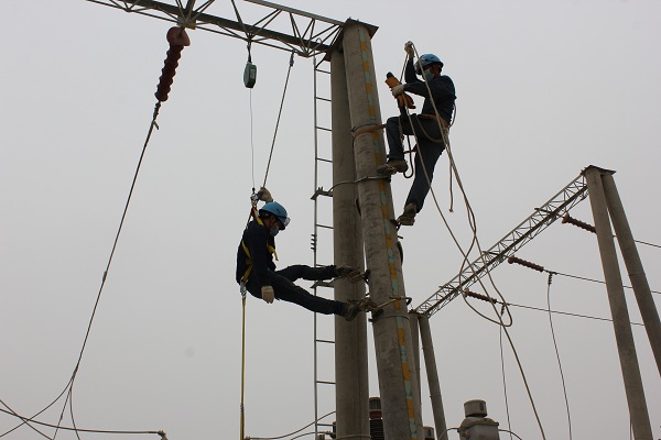 中國電力網訊 4月17日,新疆生產建設兵團第一師電力有限責任公司輸變電工區在實訓基地開展高空應急救援演練,旨在完善高空救援應急預案,檢驗技術工人的應急救援能力。