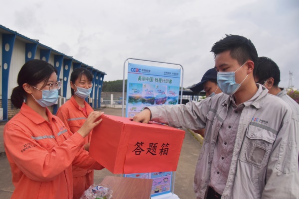 在6月5日世界環境日這天,防城港項目部開展了“美麗中國,我是行動者”答題競賽,項目部通過圖文并茂的宣傳畫和志愿者們會繪聲繪色的講解,向職工普及環保知識,吸引了眾多職工報名參賽。參賽者們認真思考、認真作答,搶答氣氛高潮迭起。活動結束,參賽者和圍觀者們都紛紛表示,保護環境就是保護自己的家園,要從身邊的小事做起,為美麗中國付出行動作出貢獻。