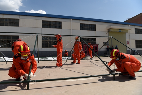 經過20多分鐘的應急演練,兩座防震帳篷按要求迅速搭建成功,1名受傷人員在緊急醫療救護后被迅速送往醫院。隨后,演習指揮部詳細檢查了防震帳篷搭設情況,聽取了各搶險隊伍巡檢匯報。