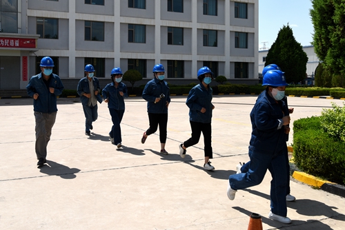警報拉響后,來自來該廠的6個分場、3個部門的的職工迅速組織成應急搶險隊伍,向應急指揮中心院內集結。同時,該廠非生產區域辦公樓的工作人員也沖出辦公場所,向應急疏散避難場所內緊急集結。