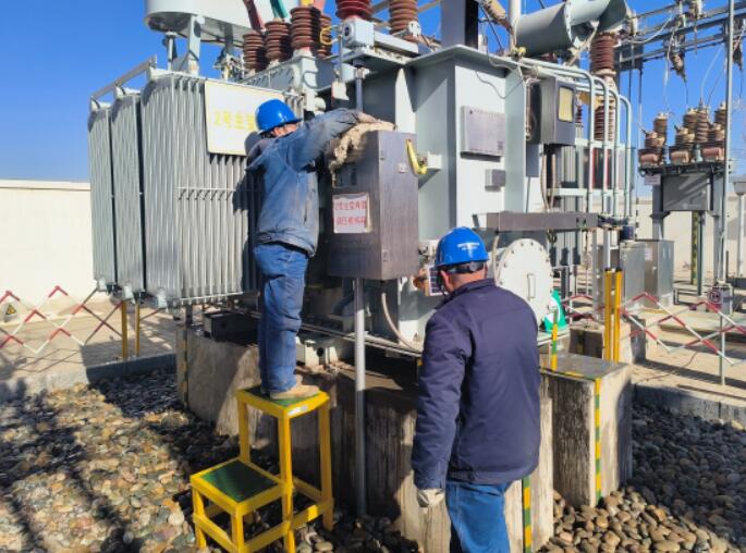 “報告班長,今日巡視發現35千伏永泰變2號主變有滲油現象。”1月11日上午10時20分,國網白銀供電公司景泰縣供電公司變電運檢班班長盧守武接到運行值班員巡檢設備異常的電話。永泰變是該公司春節保供電重點變電站,承擔著景泰縣寺灘地區所有居民用電及沙場開采、農業生產的供電任務。隨著春節臨近,若變壓器長時間滲油,油位低可能導致變壓器內部繞組絕緣散熱不夠,引起主變油位低告警,嚴重時可能會影響電網正常運行。放下電話后,為了在最短時間處理設備缺陷保證電網安全運行,盧守武第一時間組織檢修人員趕赴現場,查看滲油情況。