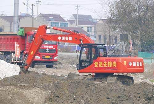 2月21日,工人們戴著口罩在工地上進行作業、挖掘機忙著挖掘碎石和泥塊,渣土車來來往往清運著石料……繁忙的景象打破了多日沉寂,由中國安能第二工程局常州分公司承建的新孟河延伸拓浚工程常州新北區河道八標段正式復工。