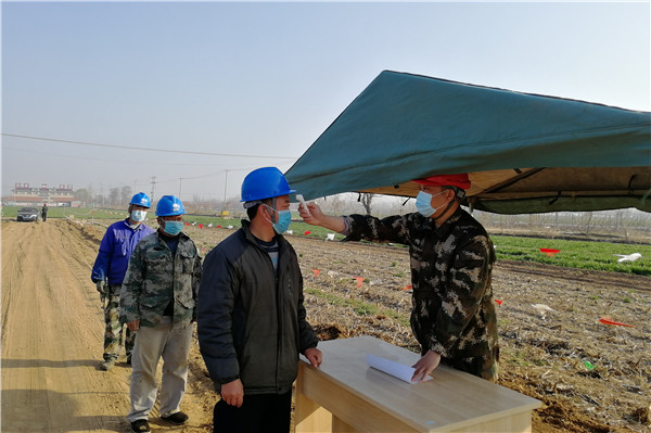 “您好,我是線路工程施工現場的疫情防控員,施工區域封閉式管理,進場人員請主動配合測量體溫”。