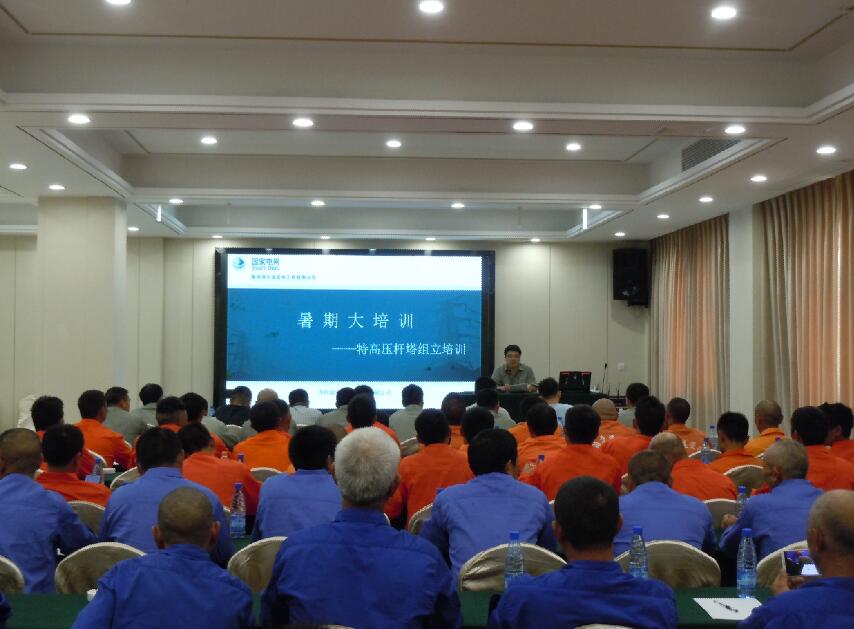 為確保工人正確使用和維護該型抱桿,7月17日至18日,白鶴灘~江蘇±800千伏特高壓直流輸電線路工程(鄂7標段)立塔作業(yè)前,鄂電“鐵軍”組織即將進場施工的17個作業(yè)層班組100人,開展為期兩天的理論學習、實操培訓暨桿塔組立首基試點。培訓圍繞落地雙搖臂抱桿使用注意事項、落地抱桿使用組塔要點及安全控制措施等內容展開。抱桿、絞磨生產廠家技術人員和該公司施工管理部、設備租賃分公司相關人員通過理論授課和現(xiàn)場實操演練結合的方式對抱桿的構件、性能參數(shù)以及安裝使用流程進行全面介紹,并針對作業(yè)人員提出的問題作了細致解答。