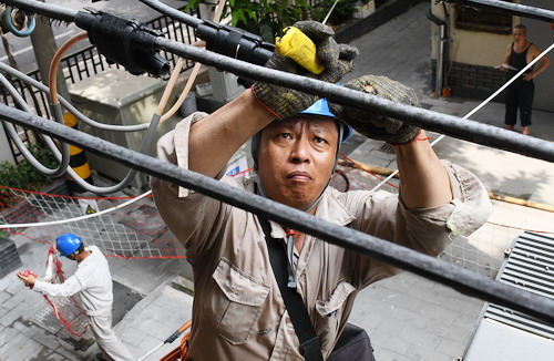 本網訊 9月3日,國網福州供電公司施工人員在福州市臺江區新興小區對低壓線路進行纜化改造,有效提高該小區供電可靠性。新興小區配網改造也是該公司進行老舊小區配電設施改造的一個縮影。