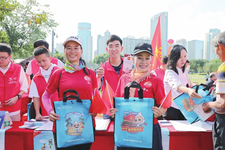 12月1日,海南省暨海口市2019年“憲法宣傳周”活動在海口市萬綠園啟動,海口供電局在活動現場開展“依法用電、安全用電”宣傳。楊永光 攝