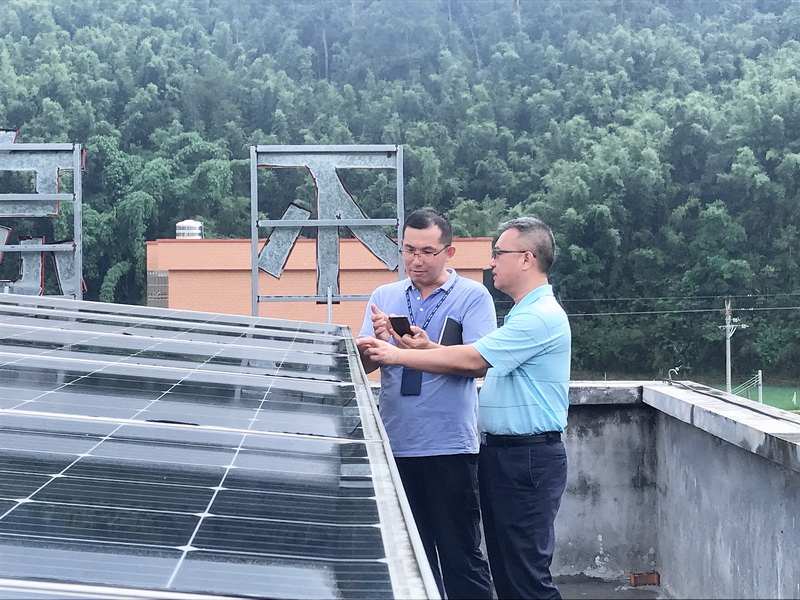 除了建設大棚蔬菜基地,高鋒還一直在琢磨,如何結合電網企業的專業優勢促進打贏脫貧攻堅戰。經過調研,高鋒帶領駐村工作隊積極探索適合林洞村發展的扶貧項目,多次與南方電網能源公司溝通,通過實地調研和可行性分析,結合林洞村日照較長、光資源豐富的特點,最終決定在林洞村開展光伏扶貧項目。2017年建成了裝機容量30kW的一期光伏項目,2018年9月裝機容量70.5KW的光伏發電二期項目也竣工并網發電,至此,在駐村工作隊的協調下,林洞村共建設了光伏電站100kW。