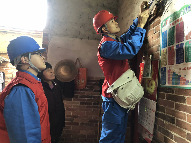 南方電網“高鋒愛心供電服務隊”志愿者為小婷家檢查用電設備。林丹丹 攝