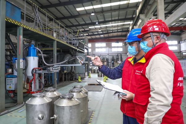 中國電力網訊 2月8日,浙江寧波海曙供電公司紅船共產黨員服務隊走進望春工業園區寧波同創強磁材料有限公司,上門對企業各個生產車間用電設備進行檢查,確保企業春節期間的生產用電無憂。