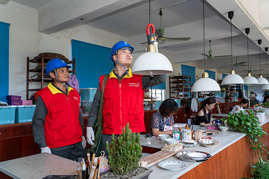 當天,紅船共產黨員服務隊隊員走進善璉湖筆廠裝套、梳毛等生產車間,對內部電氣主接線、高低壓設備、應急電源燈和用電工器具等關鍵設備進行安全排查,幫助糾正不安全用電行為,督促用戶及時整改。在中國湖筆文化館內,他們仔細檢查配電箱及低壓線路,對內部線路老化破損、插座開關接觸不良等問題進行消缺處理,并對警示標志等進行規范整頓,精心營造安全用電環境。