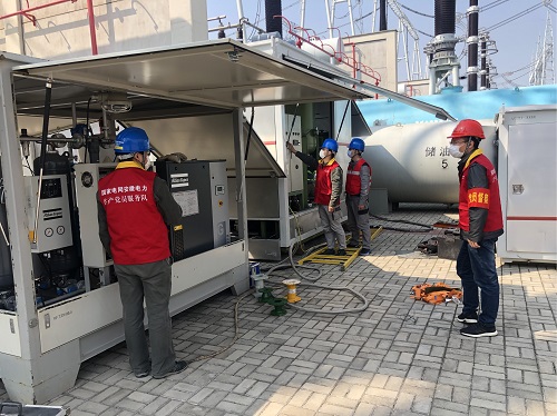 母線PT主要供輔助并網、繼電保護和監測母線運行狀態使用,特高壓淮南站在初期建設時設計安裝單相PT,今年開展了1000千伏母線B、C相加裝PT工作。公司調配精干力量組成專項工作小組,提前勘察作業現場,工地監督人在現場再三強調:“作業現場有真空機、空氣干燥機、200噸吊車、25噸吊車和8噸吊車等多臺大型機具,相鄰間隔帶電運行,一定要提前規劃好車輛作業路線和機具、物料擺放位置。”由于工期緊張,每天現場作業時間長達12個小時,公司在全力做好疫情防控工作的同時,采用“工地監督+到崗到位+全時段視頻稽查+不定期檢查”四合一的方式扎實開展現場安全管控工作,此次工程結束將有效降低特高壓淮南站GIS在系統調試和運行中空充主母線時的放電故障率。