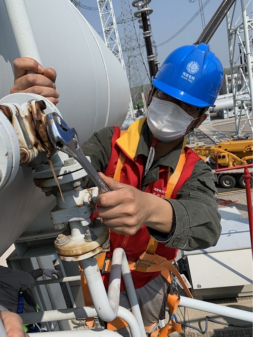 在對特高壓淮南站主變高壓端子接線柱及端部法蘭進行排查時,發現接線柱有偏移且端部法蘭不平整,作為變電站的“心臟”,必須確保主變的健康水平,4月3日至5月8日,國網安徽檢修公司圓滿完成特高壓淮南站內兩臺主變的“心臟手術”,此次開展1000千伏主變高壓套管大型檢修工作是省內首次,國網安徽檢修公司提前編制檢修方案和安全措施,組織各單位技術骨干協同作戰,細摳每一個作業環節,從引線拆除、主變排油、套管端子更換,到抽真空、真空注油、修后試驗,手術的每個環節都一絲不茍、有條不紊。“今天晚上需要進行關鍵的抽真空工作,我在現場通宵看守,不然我不放心。”每到關鍵環節,工作負責人甚至需要通宵值守。歷經36個日夜的奮戰,終于完成“心臟手術”,確保主變以最佳狀態重新投入到電網運行中。