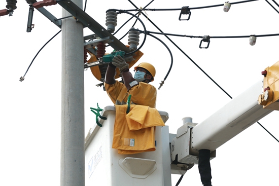 中國電力網訊 7月6日,在濰坊壽光市紀臺鎮某企業附近,國網壽光市供電公司帶電作業人員對10千伏紀五線42號桿隔離刀閘燒毀缺陷進行帶電處理,及時消除線路運行隱患,保證轄區企業迎峰度夏期間電力可靠供應。