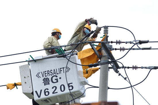 中國電力網訊 7月19日,國網壽光市供電公司帶電作業人員對10千伏官橋線高官支線036號桿帶電更換斷裂瓷瓶,并修補破損導線,進一步提升線路供電可靠性,為沿線居民客戶度夏舒心用電提供了保障。