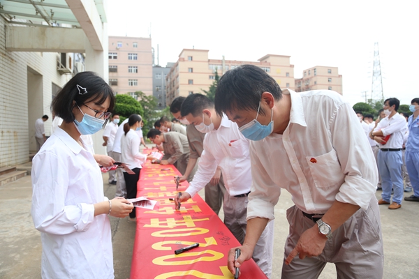 圖為現(xiàn)場人員進行安全生產(chǎn)月主題簽名