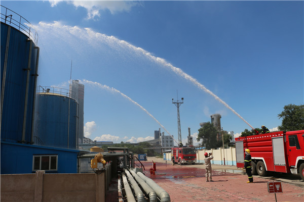 消防隊接到報警后立即出動消防車趕往火災(zāi)現(xiàn)場進行滅火,同時聯(lián)系化廠消防隊支援。各應(yīng)急組到達現(xiàn)場后,緊張有序的開展應(yīng)急救援。經(jīng)過協(xié)同作戰(zhàn),燃油罐區(qū)明火已經(jīng)撲滅,消防人員正在清理現(xiàn)場,防止復(fù)燃,無其他設(shè)備、人員不安全事件。至此演練結(jié)束,高金鍇宣布應(yīng)急響應(yīng)結(jié)束,關(guān)閉應(yīng)急預(yù)案。
