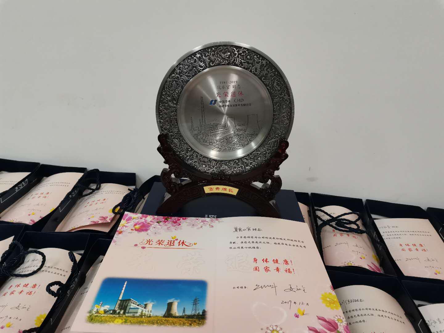 本次該公司工會精心挑選了純錫盤擺件和賀卡,作為退休職工的紀念品,并印上了“光榮退休”“公司新機圖案”、答謝語,并祝身體健康、 闔家幸福,公司黨委書記、總經理簽名,體現了公司對退休職工的關懷與深情厚意,表達了公司領導對退休職工在公司發展和建設上辛勤付出的感謝。這一舉措也得到了廣大職工的贊譽。
