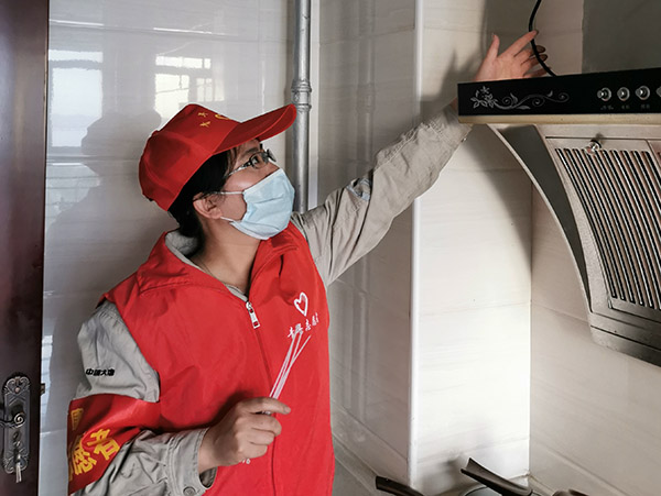 團員青年檢查居民家中用電線路情況