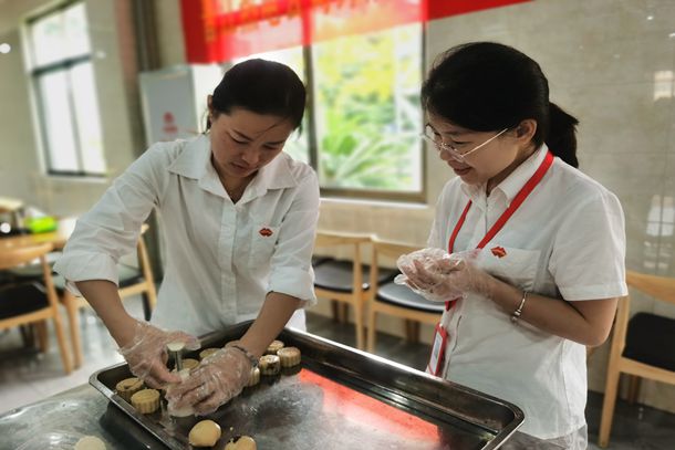 活動當天,該公司工會工作人員早早準備了制作月餅模具及餡料等,大家圍在一起,忙的不亦樂乎,稱重量、分餡料、壓模型......雖然大家都是“新手”但在有經驗的“師傅”指導下,每一步都做得格外用心,大家邊做月餅,邊相互探討著做法。